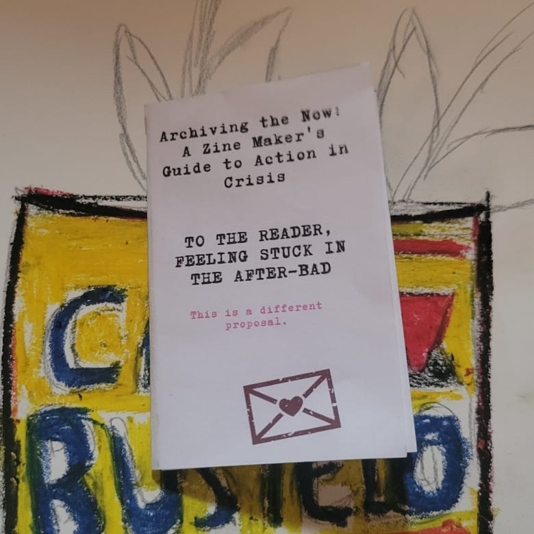 Document your now. Your grief. Your rage. Read, print and share Archiving the Now: A Zine Maker’s Guide to Action in Crisis. Then make some zines. Print and share them too. Share your knowledge and expertise. Share your art and your heart.